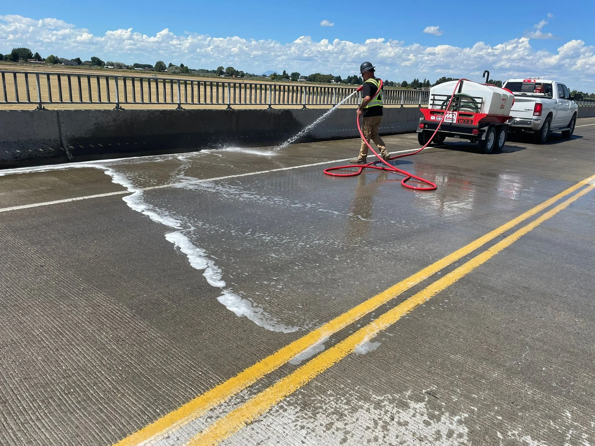 After several discussions, it was decided they would do their first bridge application with TechCrete 2500 Waterproofing Agent on a 17,100 sq. ft. bridge outside of Blackfoot, Idaho. The extremely fast application process allows the bridge to be closed down to traffic and opened back up again substantially faster than most other waterproofing offerings. In addition to the speed-of-application (and lack of expensive equipment needed), the TechCrete 2500 Waterproofing System provides ITD with true waterproofing protection that will prevent damage to their bridges for decades to come. The sub-surface waterproofing gel fills all of the existing cracks in the concrete surface … as well as sealing future cracks as well. This is one of the key factors that sets Alchemco waterproofing apart from the rest of the industry offerings.