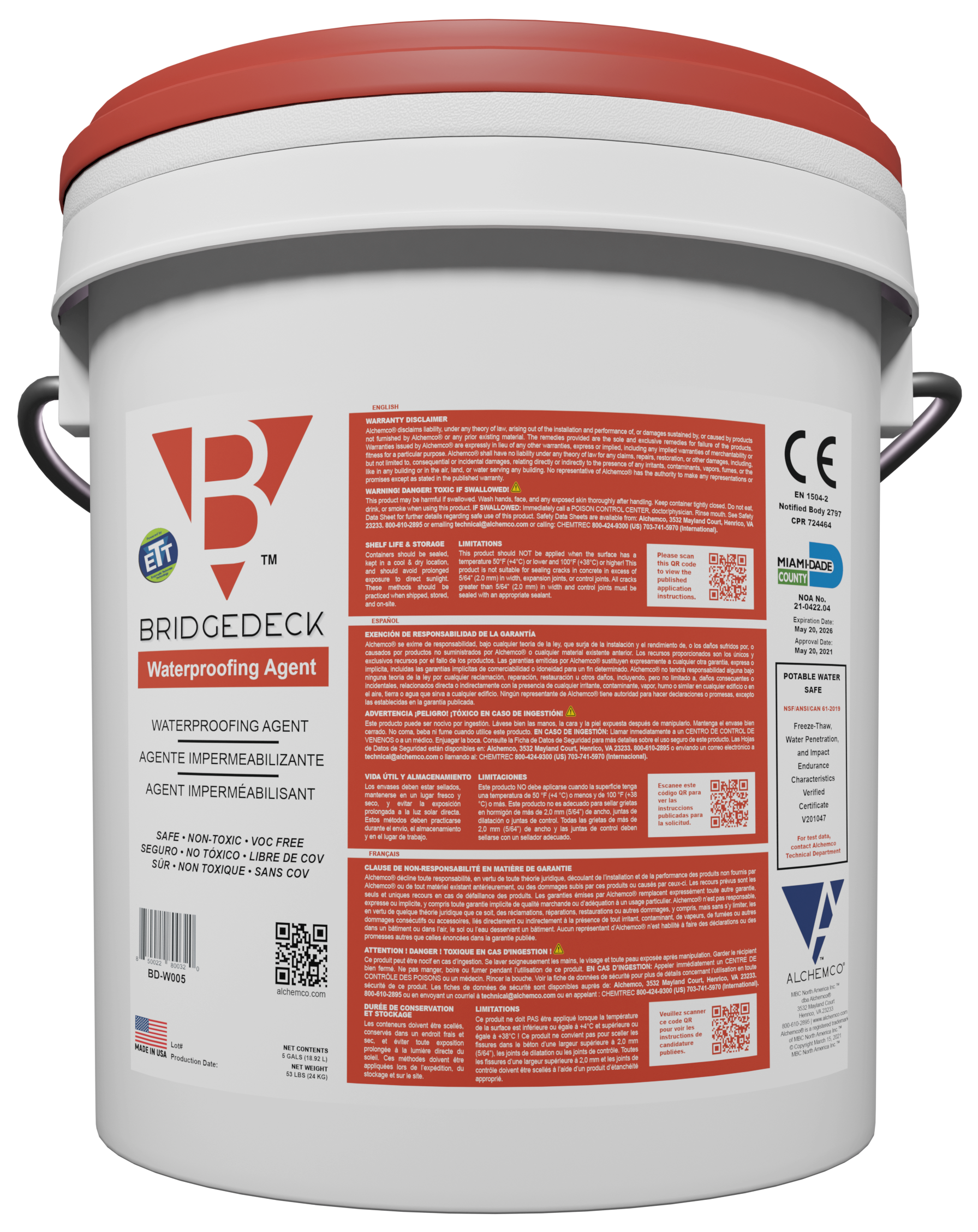 Alchemco BridgeDECK Waterproofing Agent is a subsurface waterproofing system designed to protect and extend the life of concrete structures. Working from within, it seals pores, capillaries, and cracks, providing long-term durability. Spray applied, it treats existing cracks up to 2.0 mm and future cracks up to 1.0 mm.
