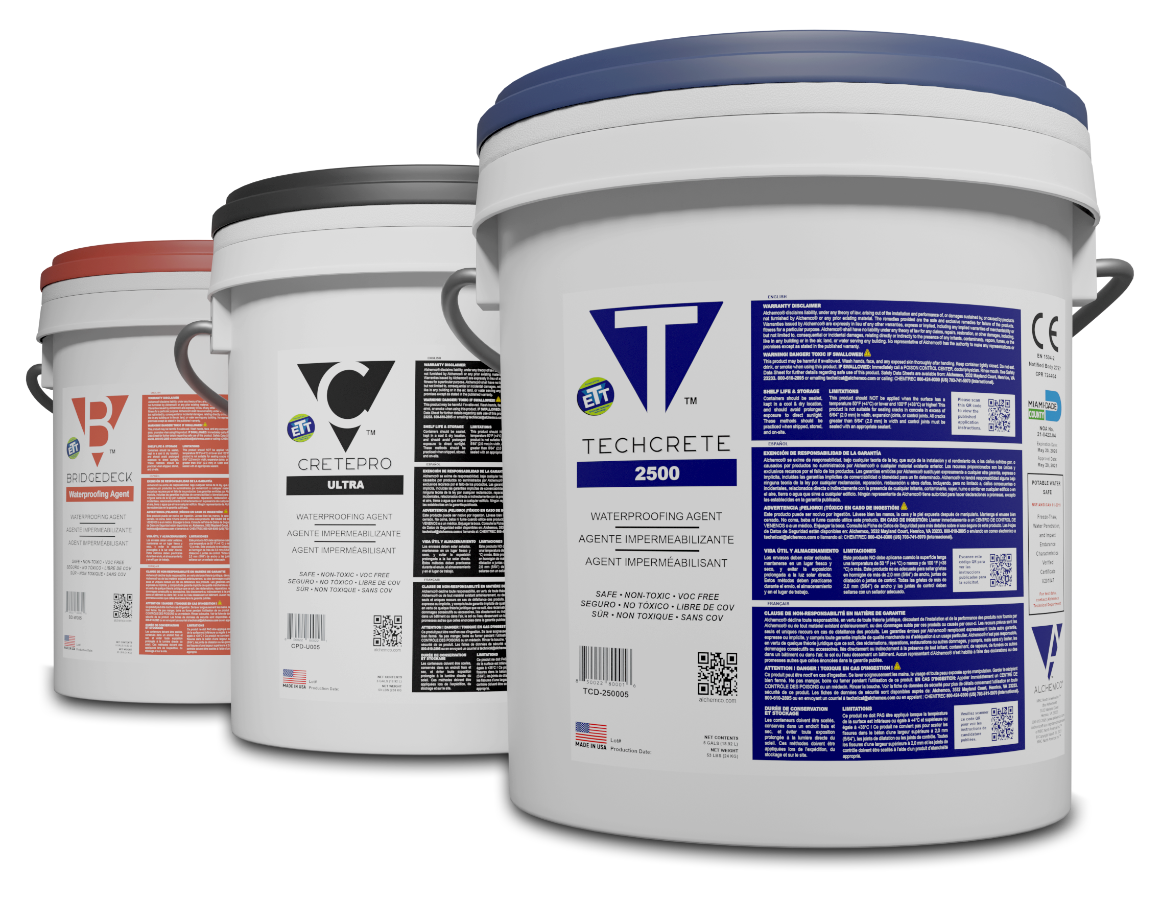For maximum performance, ETT technologies are applied as part of the integrated Alchemco WaterTite system, which includes ACR surface and crack accelerators, Duratite mortars and sealers, and specialized accessories for joint treatment and surface preparation.