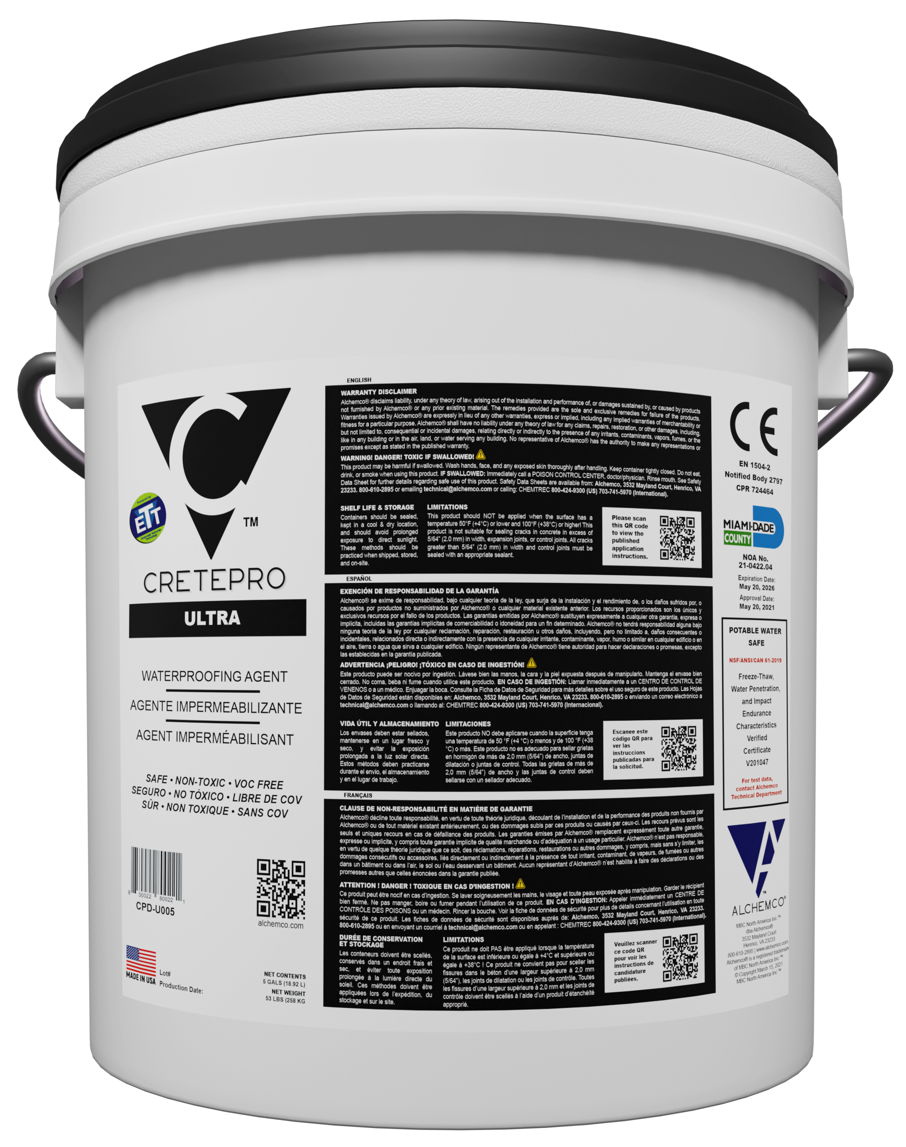 Alchemco CretePRO ULTRA is an enzyme-modified subsurface waterproofing system for horizontal and vertical concrete applications. It penetrates deep into the substrate, forming an internal barrier that seals pores, capillaries, and cracks. The self-healing system protects structures from water intrusion and damage, sealing existing cracks up to 2.0 mm and future cracks up to 0.5 mm.